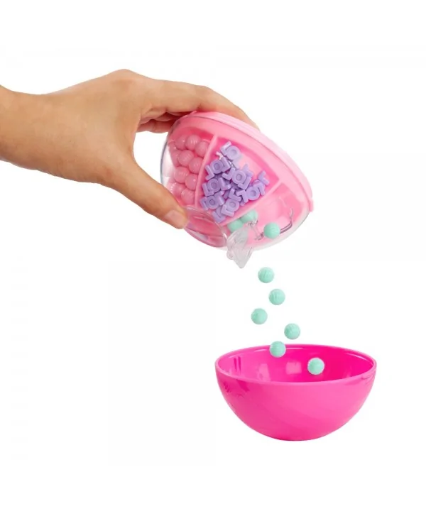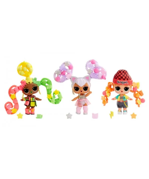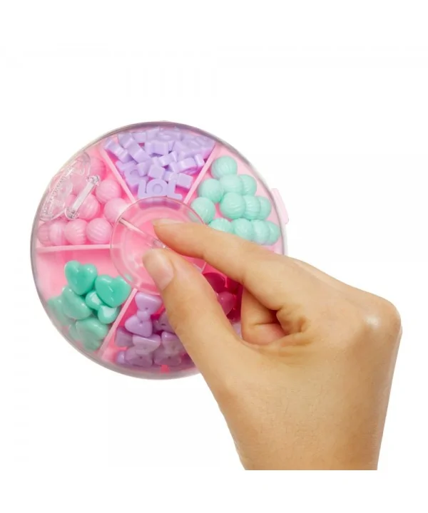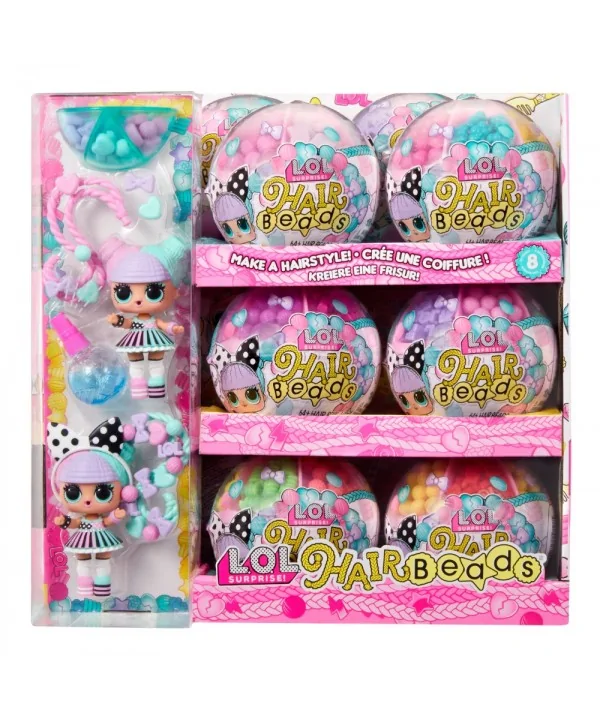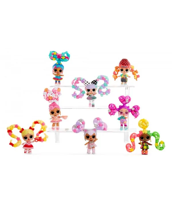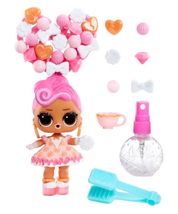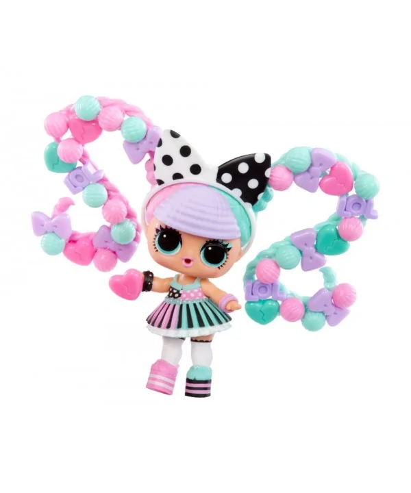 Vytváraj farebné, rozpustilé účesy L.O.L. bábikám. V balení nájdeš obrovské množstvo korálikov, z ktorých vytvoríš copy, vrkôčiky alebo napríklad drdoly. Bábike stačí vsadiť do drdolu prameň vlasov, vopred ho namočiť na chvíľku do vody, a už môžeš korálky skladať. Rozprašovačom z balenia navlhčíš hotový účes a necháš stvrdnúť. Keď sa účes nepáči, môžeš korálky rozobrať a vytvoriť iný. Pramene vlasov aj korálky je možné v tejto sérii medzi bábikami meniť.