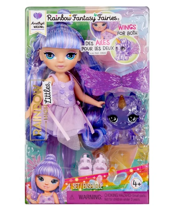 Rainbow High Malá sestrička víla – Amethyst (Purple) je dokonalým darčekom pre všetky malé milovníčky farieb, lesku a rozprávkových bytostí.