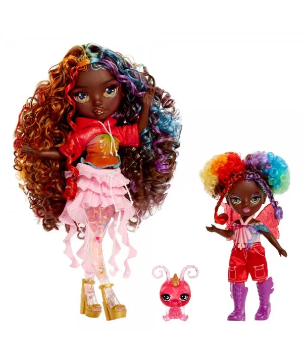 Objav čarovný svet Rainbow High Malá sestrička víla Astrid – rozprávkovú bábiku, ktorá prinesie do hry kúzlo, farby a fantáziu! Táto malá víla s jemnými krídelkami a ligotavými doplnkami je pripravená rozžiariť každý deň svojím žiarivým štýlom. Jej nádherný outfit v odtieňoch ružovej a modrej s trblietavými detailmi dokonale vystihuje jej víliu osobnosť. Astrid miluje módu, hudbu a dobrodružstvá so svojimi kamarátkami z Rainbow High, preto je ideálnou spoločníčkou pre malé milovníčky fantázie a štýlu.