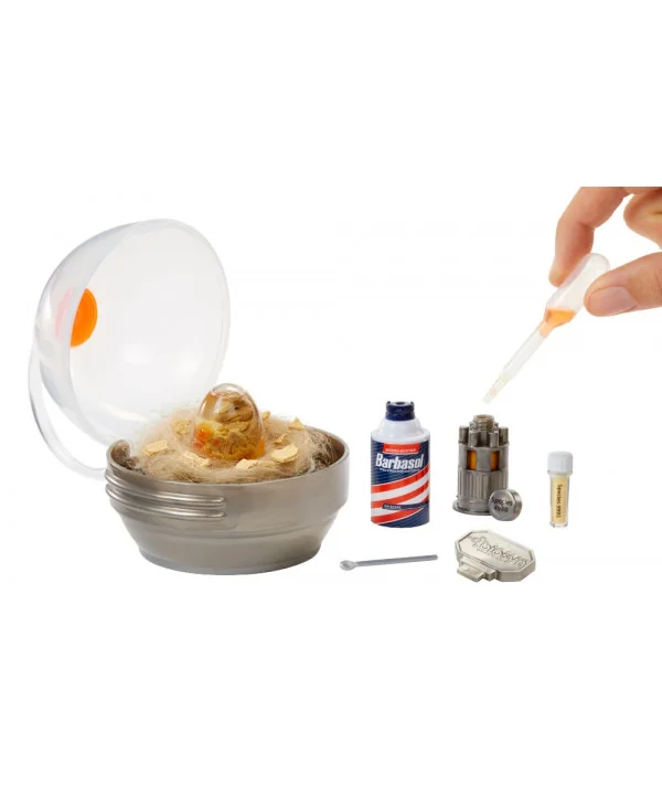 Balenie obsahuje všetko potrebné na okamžité hranie: 1 set s inkubátorom pre dinosaura, 1 nádobku s práškom a 1 nádobku s tekutinou. Vďaka jednoduchému a pútavému postupu sa deti rýchlo ponoria do hry a zažijú vzrušenie z objavovania.