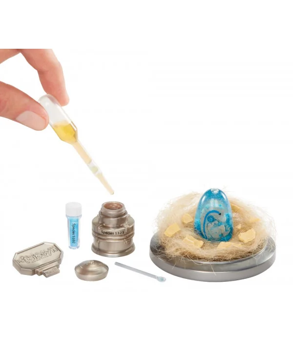 V balíčku objavíte dinosauriu DNA a striekačku, ktorou ju vložíte do dinosauřieho vajca. Každé vajce má vlastný QR kód, podobne ako vo filme, vďaka ktorému získate ešte viac zábavy a napätia. Ak práve vy dostanete vajce, stačí ním zatriasť, rozbiť ho a sledovať, ako sa vo vašich rukách narodí mini dinosaurus.