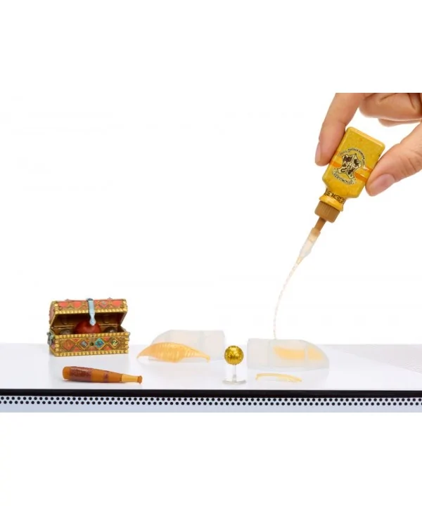 Vystav to! Vyrob si mini repliky kúzelných predmetov z Harryho Pottera. V balení nájdeš materiál a komponenty na výrobu sovy, kúzelné paličky, šál, lietajúcich metiel a mnoho ďalšieho! Získaš tak hyperrealistické a detailné miniatúrne repliky z filmov. Akonáhle máš miniatúru pripravenú, nechaj ju stuhnúť na priamom slnku alebo pod 365nm UV svetlom aspoň 5 minút. Celkom 12 miniatúr na zozbieranie.