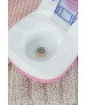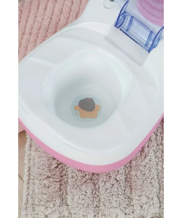 Toaleta má rozkošný dizajn s ružovým vekom, trblietavými detailmi a ikonickým logom BABY born. Keď bábika dokončí „svoju potrebu“, z misy sa ozve splachovací zvuk – presne ako v skutočnosti! Navyše, keď bábika „urobí potrebu“, v mise sa objaví farebné prekvapenie. Tento realistický a interaktívny doplnok učí deti zodpovednosti a zároveň prináša nekonečnú zábavu pri každodennej hre.