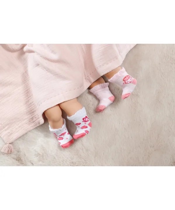 Roztomilé ponožky Baby Annabell pre bábiky veľkosti 43 cm. V balení nájdeš 2 páry s veselými motívmi.